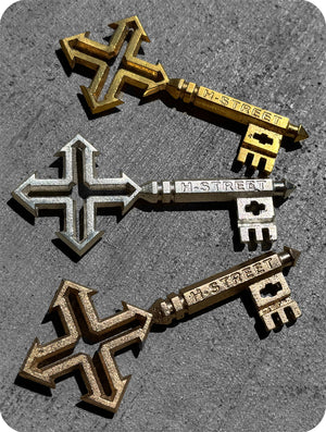 actual keys from the graphic, in conjunction with Rare Mettle, a local metal artist here in Vista, California. They’re about 5 Inch tall.