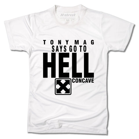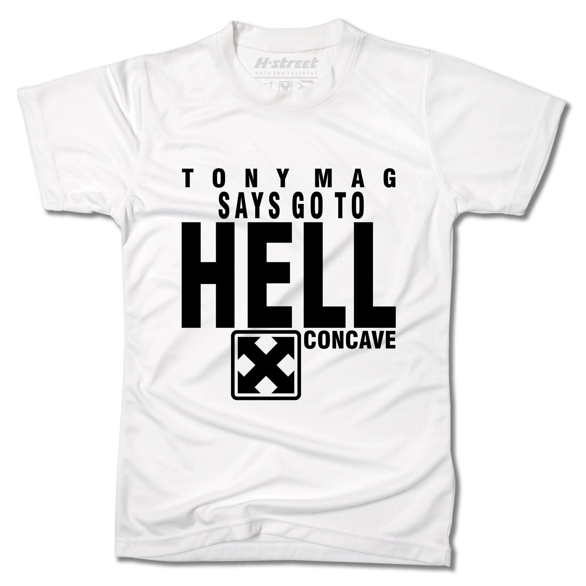 Later, Mike Ternasky came up with this T-Shirt design that was a play off this 80’s British pop dude “Frankie Goes To Hollywood” and we made the also rather infamous T-Shirt design that said “Tony Mag Says Go To Hell”, with the word “concave” real small below that text.