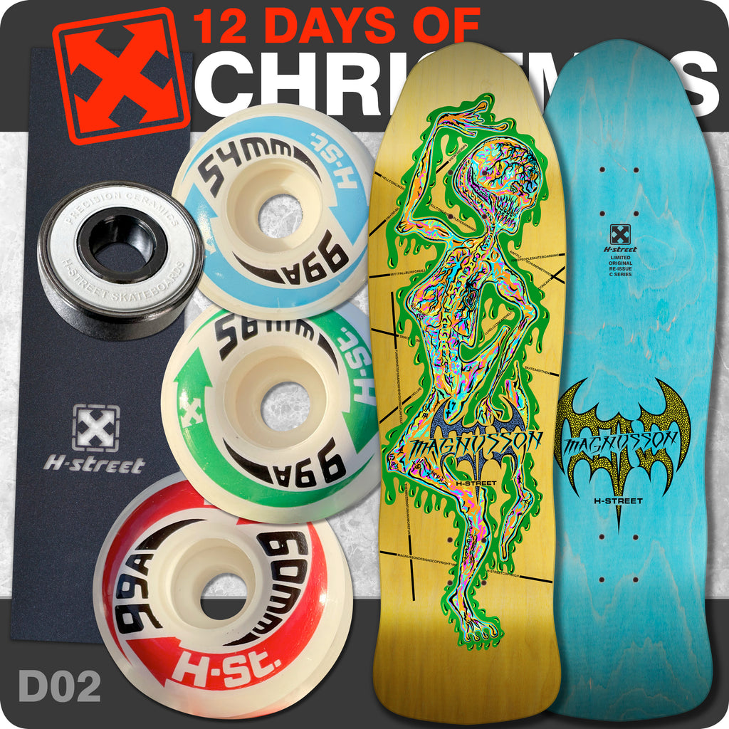 For Day 2 of our 12 Days of Christmas Specials, we have a screaming deal on H-Street founder Tony Mag’s Alien deck, usually regarded as the very first H-Street graphic done back in the mid 80’s, along with the rather remarkable Bat Logo. Both were drawn by H-Street OG artist Scott Obradovich.