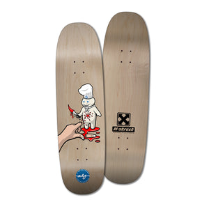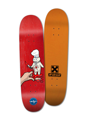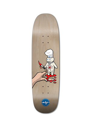 We were all good with that and here is the final result, the Wicked Dough Boy graphic, available right now in both street shapes and Matt Hensley’s Park&Pool deck that we call the Full Size Mini. All dyed veneer color is mixed.